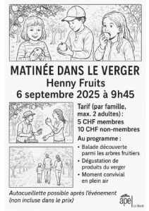 Nous vous rappelons que 25.- de la cotisation sont reversés à l’APE-Vaud.